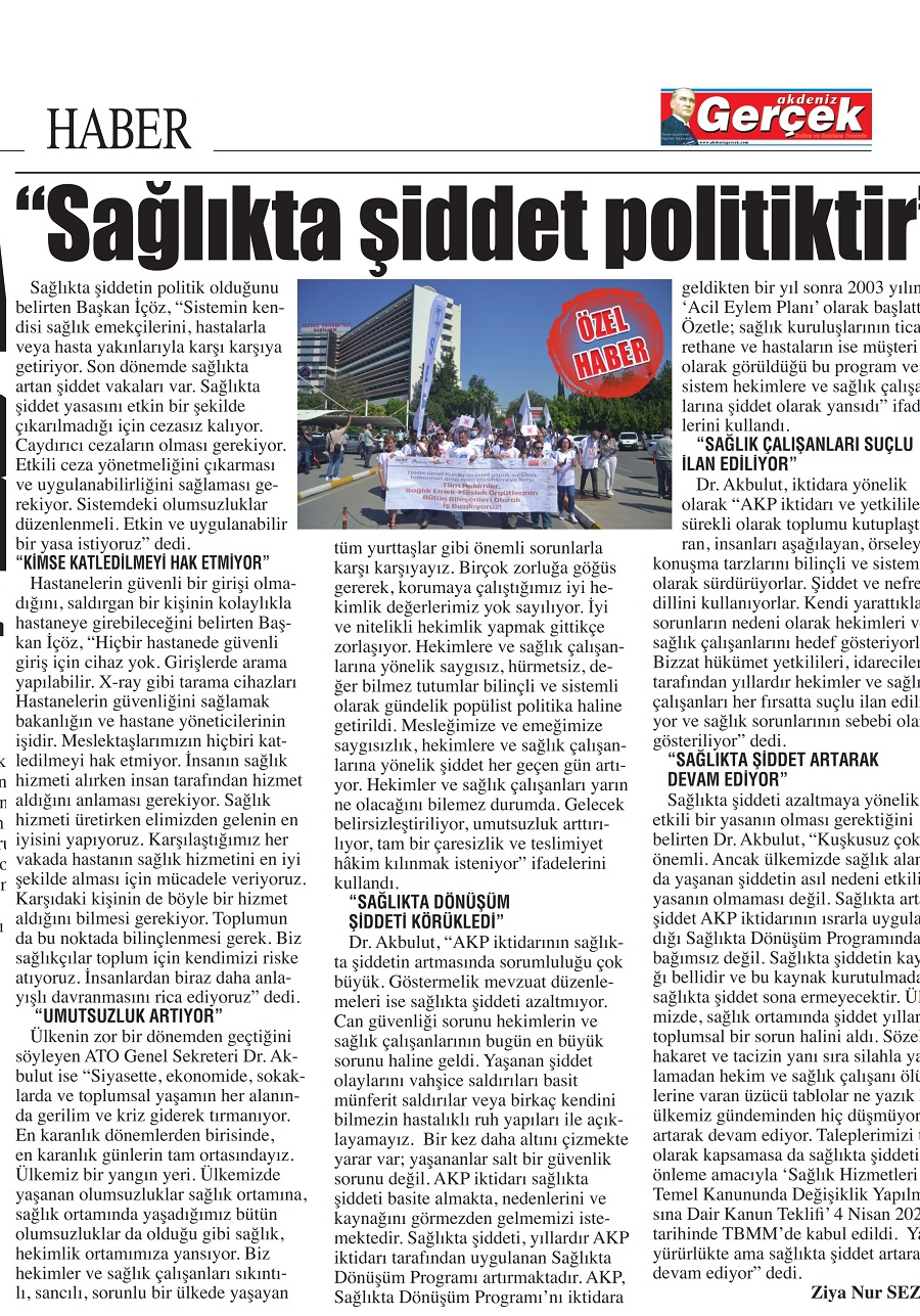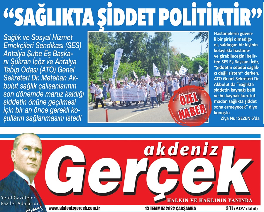 ***13 Temmuz 2022 tarihinde Antalya Gerçek Akdeniz gazetesinde yayımlanan röportajın tamamı