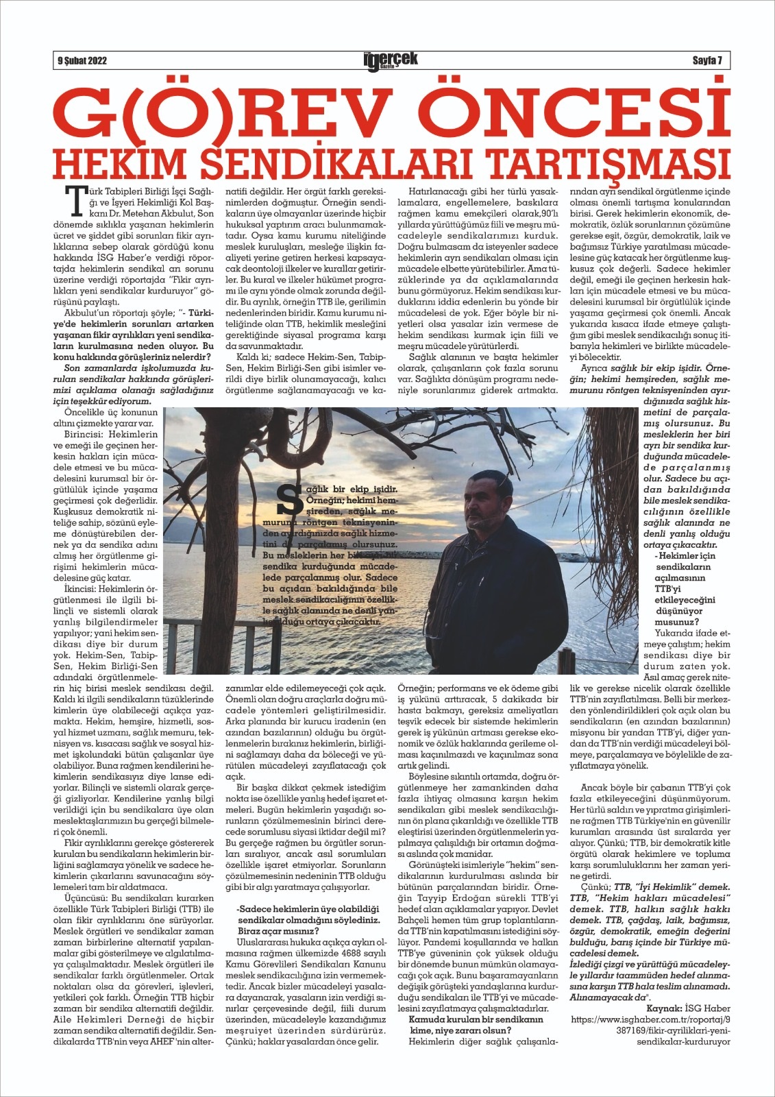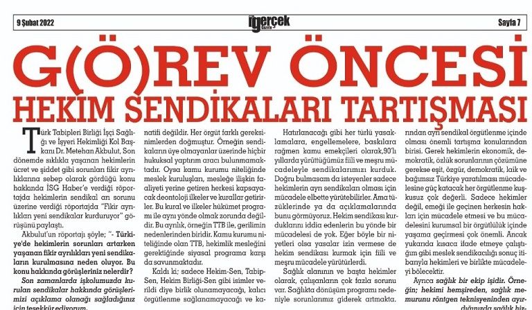 Hekim sendikaları üzerine Hekim Sendikaları üzerine İSH HABER'de yayımlanan röportaj Didim Gerçek gazetesinde İzlenme: 545 Önceki Sonraki