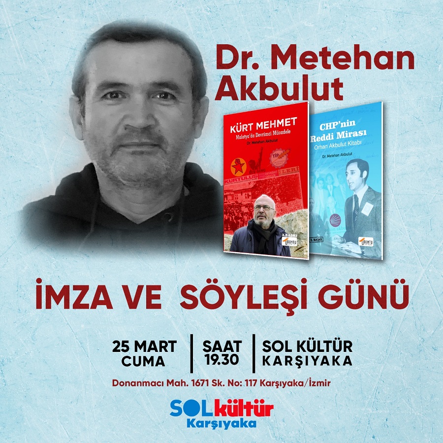 Mehmet Tekin'in de (Kürt Mehmet) katılacağı imza ve söyleşi buluşmalarımızda İzmir'de Kozalak Kültür Kitap Kültür Cafe/Buca, SOL Kültür Karşıyaka ve Narlıdere Dayanışma Kafedeyiz.