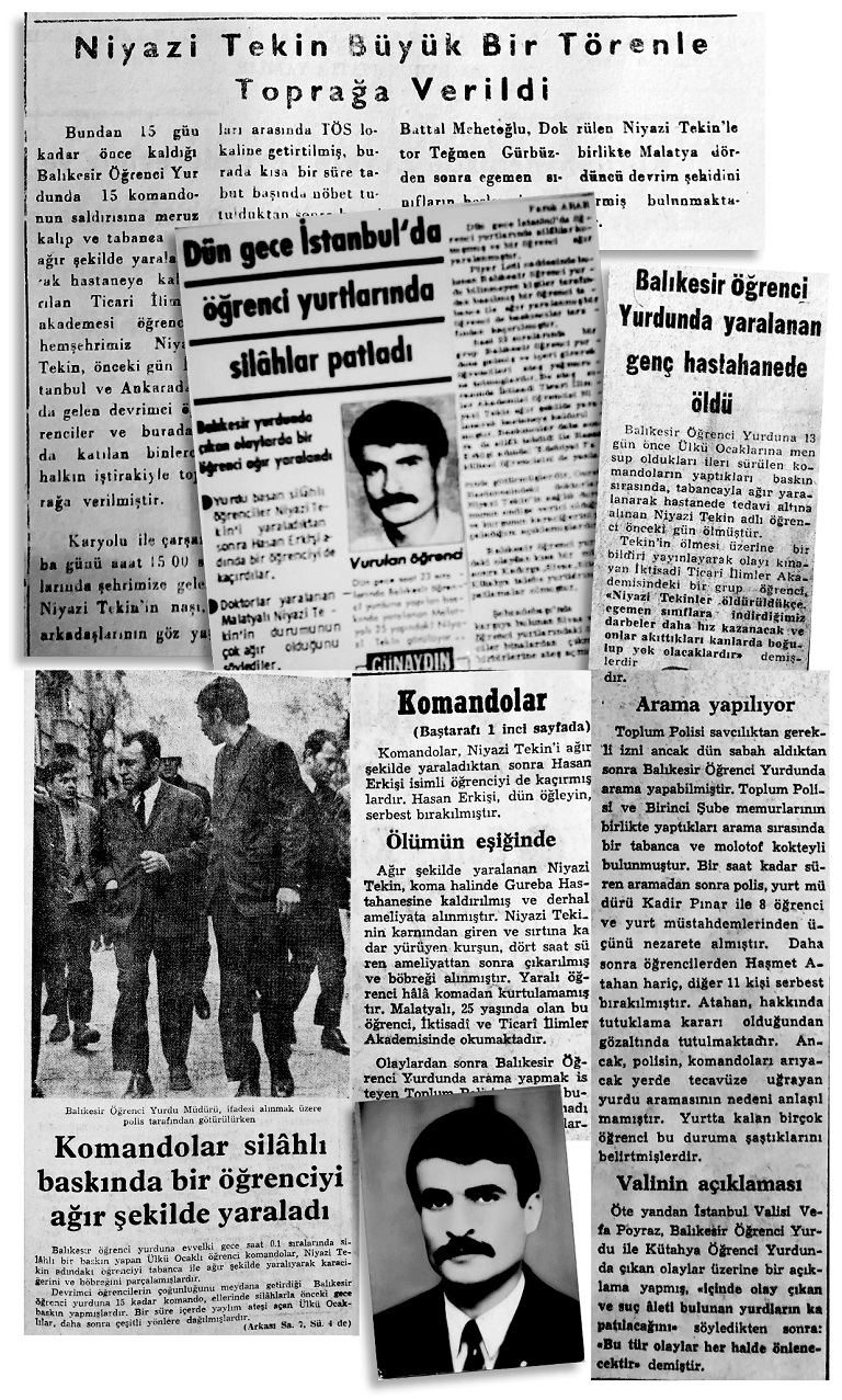 Ağabeyiniz Niyazi Tekin 10 Nisan 1971 gece yarısı İstanbul Cağaloğlu’nda bulunan Balıkesir Öğrenci Yurdunda, Ülkü Ocakları üyesi komandoların silahlı saldırısı sonucu ağır yaralandı ve on gün sonra yaşamını yitirdi. Hedef doğrudan Niyazi Tekin mi?