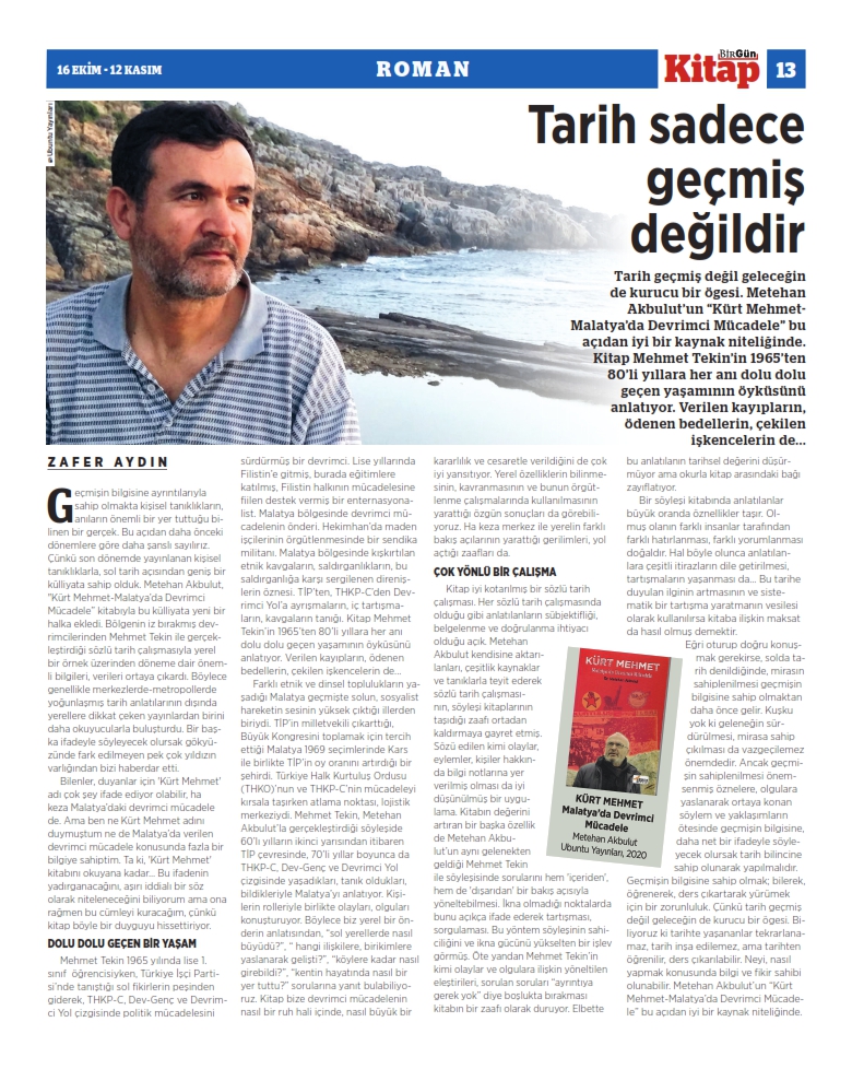 Tarih geçmiş değil geleceğin de kurucu bir ögesi. Metehan Akbulut’un “Kürt Mehmet- Malatya’da Devrimci Mücadele” bu açıdan iyi bir kaynak niteliğinde. Kitap Mehmet Tekin’in 1965’ten 80’li yıllara her anı dolu dolu geçen yaşamının öyküsünü anlatıyor. Verilen kayıpların, ödenen bedellerin, çekilen işkencelerin de...